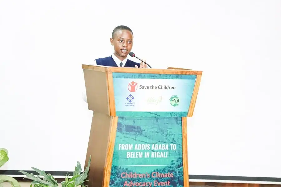 Ni abana bitabiriye inama Nyafurika ku mihindagurikire y’ibihe yabereye muri Ethiopia muri Nzeri 2025 yibanze ku gukorera abana ubuvugizi ku bibazo baterwa n’imihindagurikire y’Ikirere yateguwe na Save the Children.